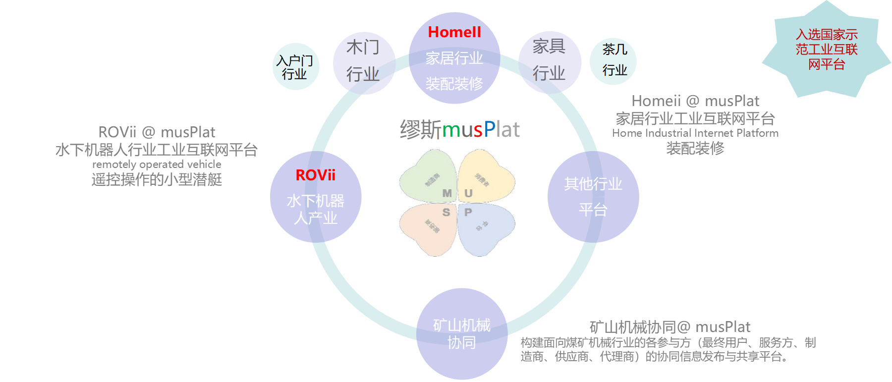 以社會再生產的四個過程,生產、分配、交換、消費為要素構建的工業互聯網數學模型稱為“繆斯模型”。 繆斯工業互聯網平臺簡稱“繆斯平臺”,是構建垂直行業工業互聯網平臺的母平臺。 我們提供構建垂直行業工業互聯網平臺的診斷、咨詢、設計、開發、實施和代運營等服務。 已有行業案例涉及家居、機械、水下機器人等。